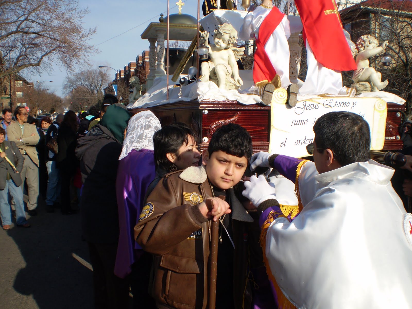 En medio de un invierno que no se quiere retirar y una primavera que buscar resurgir, va el Nazareno recorriendo las calles de Chicago en pleno abril… Uno que otro tulipán sonríe en los jardines, los arboles aun desnudos, se mecen con el viento, que mueve las aguas del lago Michigan, provocando un oleaje que lo hace ver cual si fuera un mar, mientras las gaviotas parecen chillar del frío y uno que otro pato parece levitar suspendido por el viento.